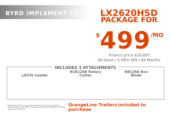 0% APR available or save up to $4,500 on LX Series Tractors!